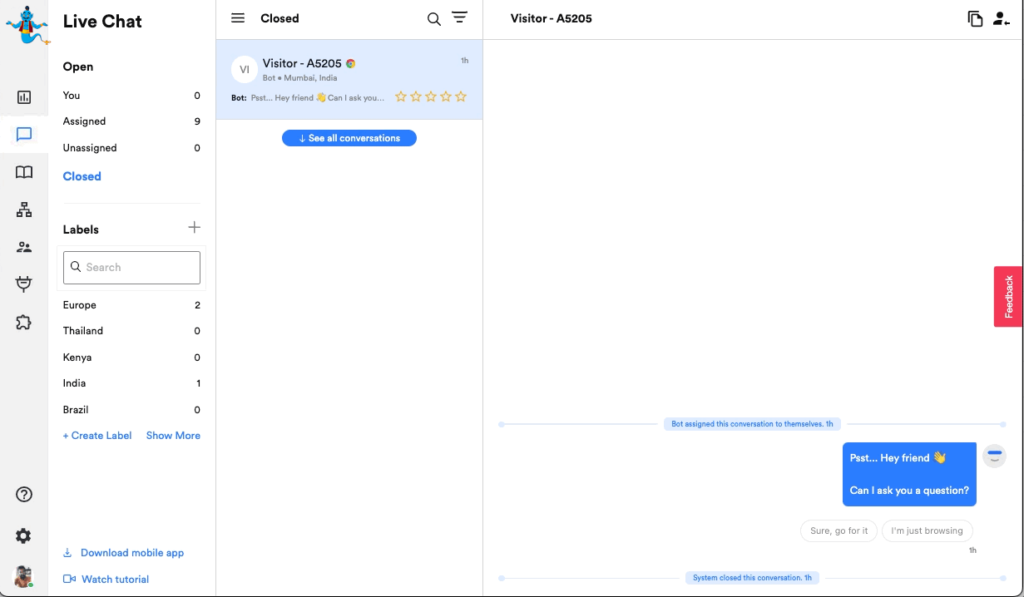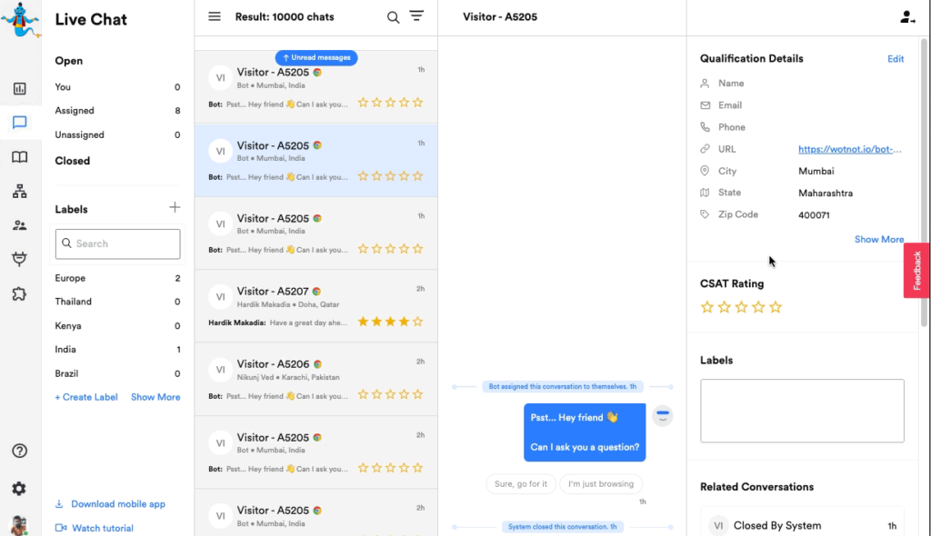 It is quite helpful from a support use case as while the agent talks to the visitor, they can quickly check the previous conversations the visitor had to lead the conversation accordingly.