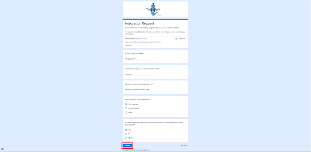 We will evaluate the request and get back once it is shortlisted for development. In-case if it is urgent and the user is willing to pay an extra amount to prioritise the development of this integration, they can mention the same on the form and someone from our customer success team will reach out to you in the next 48 hours.